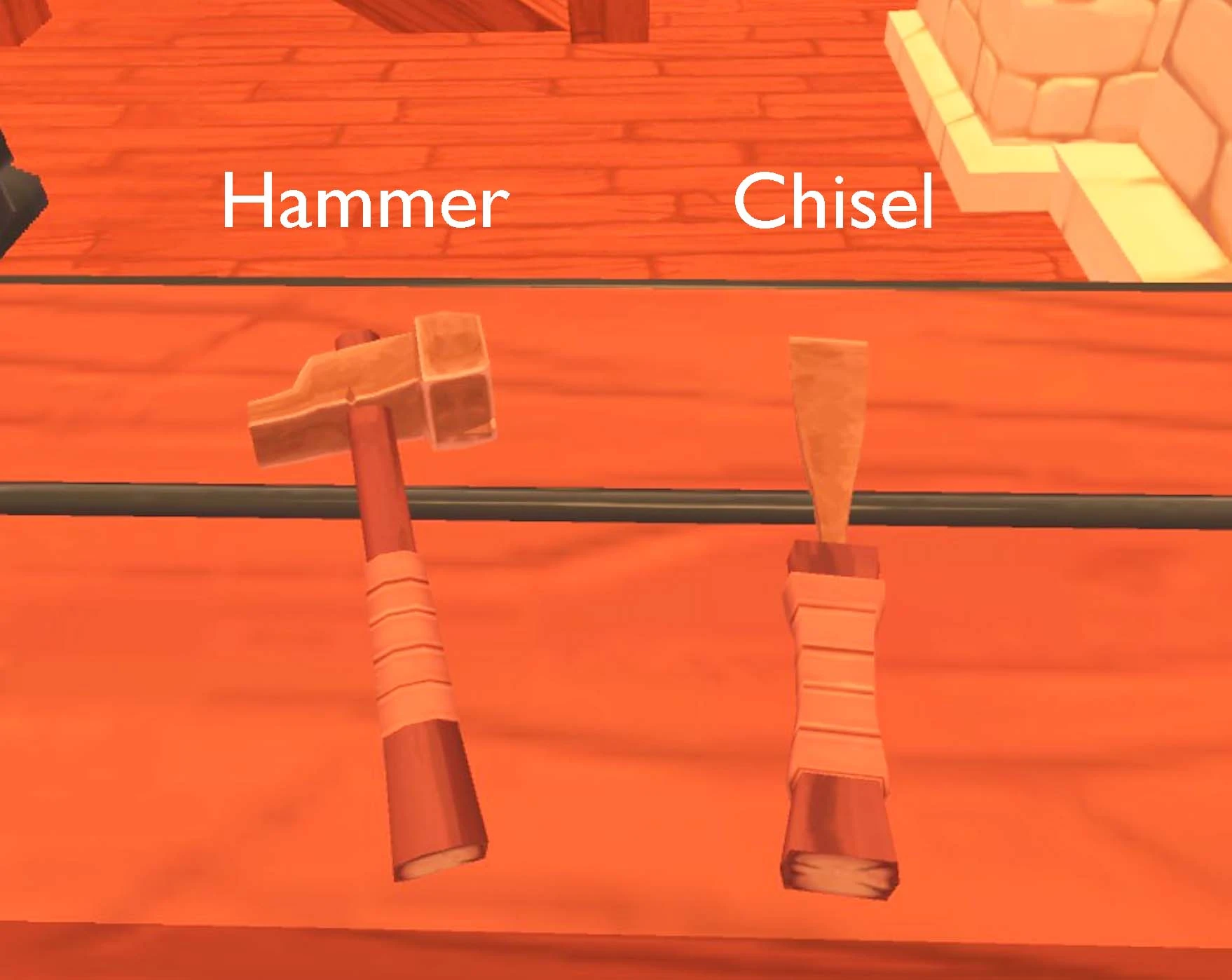 -It is possible to use a Rock on a Stick as a makeshift Hammer, and a Flint as a makeshift Chisel, though these will not be as effective as actual weapons, especially when attempting to carpent higher tiers of Wood.