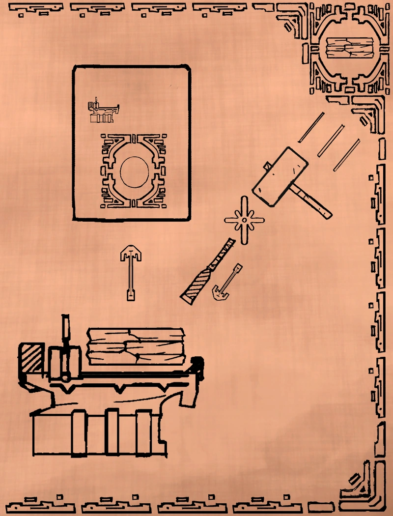 Recipes only act as a guide, it is possible to complete a Carpentry piece without the use of the recipe by using the guide below and the pattern numbers. Make sure that the arrow on the chisel deck is pointing upwards before you start.