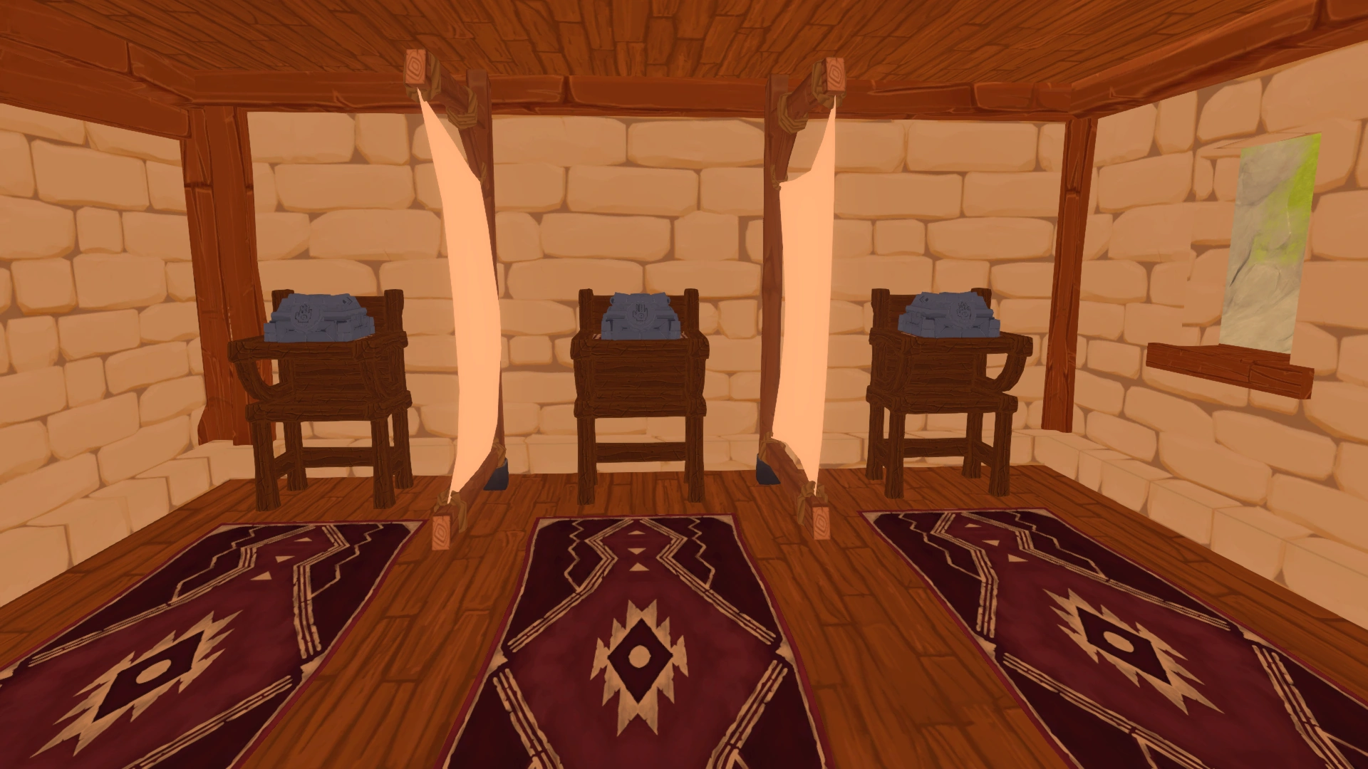 To the right of the coin banks you'll find several Lockboxes in which players can store a limited number of items for safekeeping.
